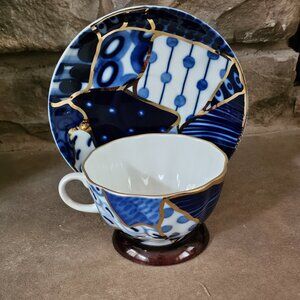 The items from Baikal collection are united by a gold ribbon that imitates restoration, which holds the "fragments" of cobalt decor together. The combination of a perfectly smooth shining porcelain surface and free-flowing golden lines gives rise to associations with Baikal ice, which determined the name of the collection.