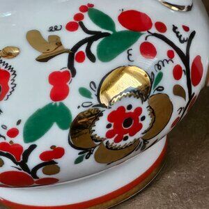 Enjoy a steaming cup of hot tea or coffee with the Lomonosov Imperial Porcelain Red Roosters Teapot. This teapot is made of porcelain by Lomonosov Imperial Porcelain Factory in St-Petersburg, Russia. The teapot will be a perfect gift for tea and coffee lovers and a perfect addition to any porcelain drinkware collection.