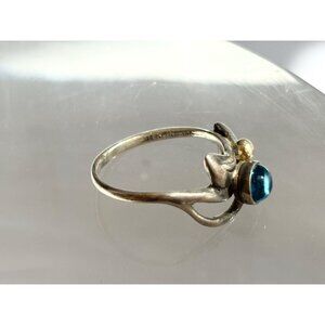 Fantastic sterling silver vintage ring. The stone is a london blue ocean drop stone. The ring is called a Wave ring. Marked as sterling and tested positive as such. There are some gold accents that are 14k gold. Lovely ring in beautiful condition. Very pretty piece.