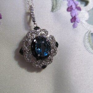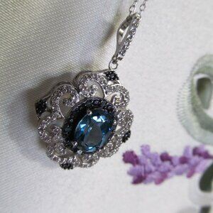London Blue, White Topaz, & Blue Diamond Necklace - Pendant & Chain NIP
