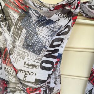 London City Print Lightweight Scarf Red, Black & White 36” x 72”
