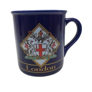 London Coffee Mug Sampson Souvenir British Ceramic Cup Blue Gold Vintage Enland