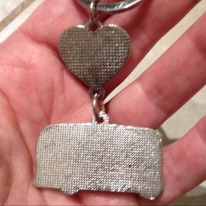 Metallic and glittery, this keychain purchased in London, has a heart-shaped Union Jack connected to a double-decker bus. The back of the keychain is a glittery gold color. This is a sturdy little thing that would make a great gift for the Anglophile in your life.