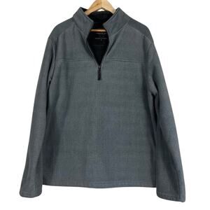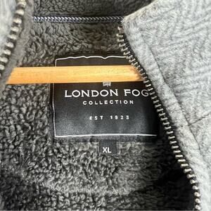 London Fog 1/4 Zip Pullover Jacket Mens XL Gray Herringbone Sherpa Lined Classic