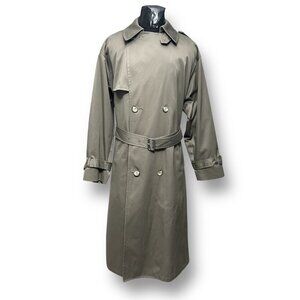 London Fog 40 Regular Khaki Belted Trench Coat Double Breasted Vintage USA