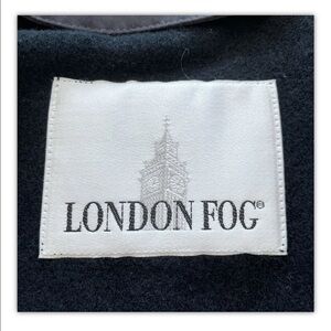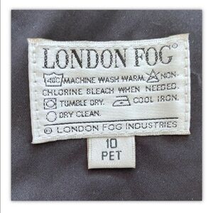 London Fog woman's black rain trench coat. Coat has a hidden button up front and a detachable lining. I can't find on any inside label what the composition is, so I'm calling it a cotton blend. Coat is a woman's size 10P or 10 petite. It's made in Korea so it is probably vintage.