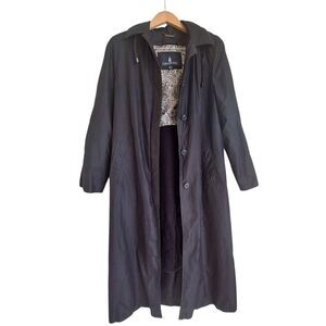 London Fog Black Maxi Trench Coat Lined With Detachable Hood + Zip Out Warmer 8