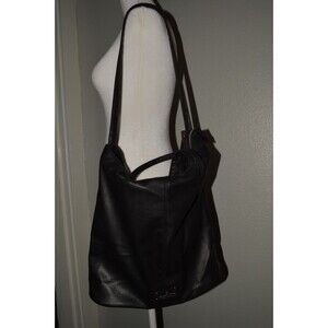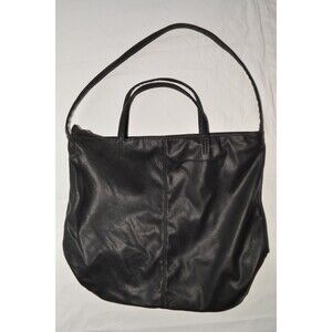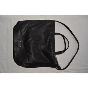 London Fog Black Pebbled Faux Leather Shoulder Bag Purse Zip Top 17"x14" NEW