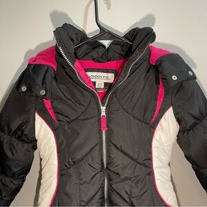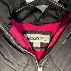 London Fog Black/ Pink Puffer Jacket Girl’s Small 7-8 Kids Outerwear Winter Warm