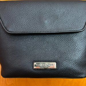 Well worn London Fog Black Should Bag measures 9x7x2.5 inches. Please see photos for areas of wear.