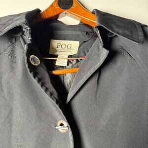 London Fog Black Toggle Trench Coat Removable Hood Size Medium