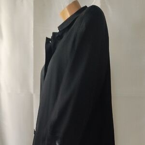 Experience the elegance of the London Fog Black Trench Coat, featuring a classic long length and a minimalist design. Crafted from a solid black material, this coat offers a relaxed fit perfect for cooler weather. Its versatile style makes it an essential addition to any wardrobe.