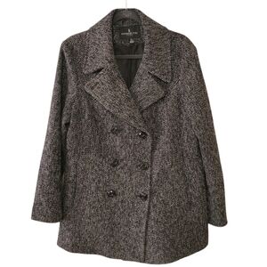 London Fog Black Wool Tweed Peacoat Jacket Size XL