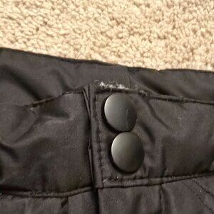 PANTS ARE LINED AND INNER LINING HAS ELASTIC CUFFS TO KEEP THE SNOW OUT.
