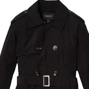 London Fog Trench Coat 40R BLACK Double-Breasted Cape Back Belted Preppy Classy Size 40R Traditional Business Casual Sophisticated