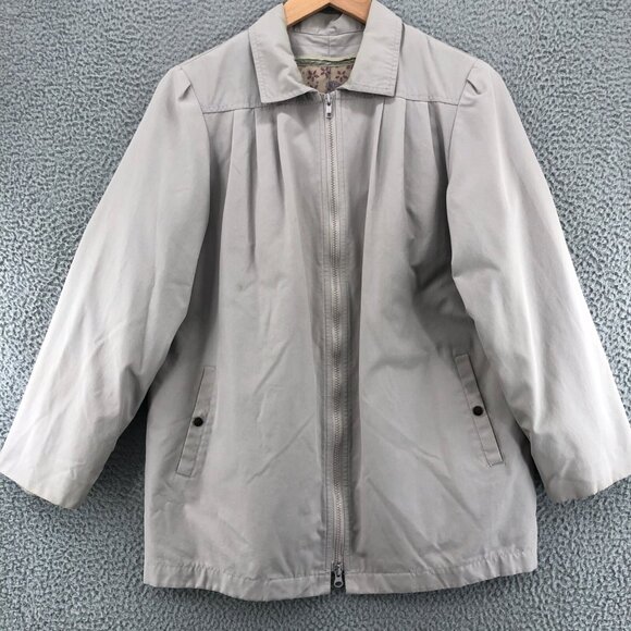 London Fog Coat Womens 12 Ivory Weathergear Zip Up Insulated Outerwear Pleated*