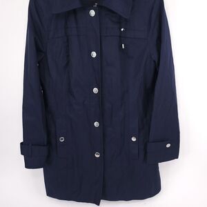 London Fog Coat Womens Medium Rain Trench Hooded Full Zip Button Long Jacket