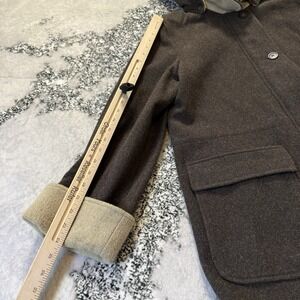 London Fog Coat Womens Size Large Brown Hooded 100% Wool Lined Button Up