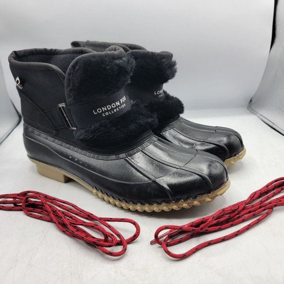 London Fog Collection Womens 9 M Black Red Boots Waterproof Outdoors Casual