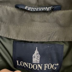 Like-new London Fog rain coat in dark khaki green. Mint condition. Very flattering.