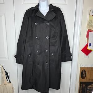 London Fog Double Breasted Hooded Trench Coat Sz Large