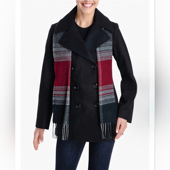 London Fog - Double Breasted Peacoat With Scarf #1091