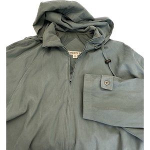 London Fog Full Zip Hooded Green Jacket Coat Lined Drawstring Women's Large