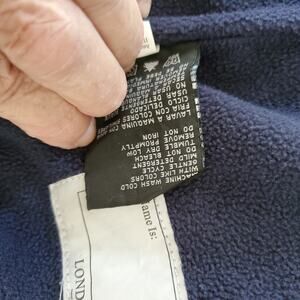 Adorable London Fog rain coat for girls, size 6X. Navy blue with an allover rainbow heart print, glitter buttons, and an attached hood. Fully lined in soft fleece for extra warmth.