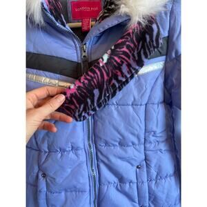 London Fog Girls' Heavyweight Puffer Jacket faux fur hood matching headband NWT