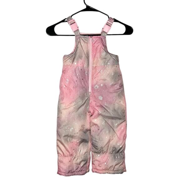 London Fog Girls Pink & Gray Galaxy Puffer Snow Bib Ski Pant Toddler 2T