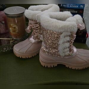 London Fog Girl's size 13Pink Glitter Faux Fur-Lined Snow Boots