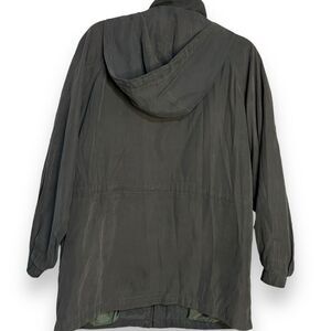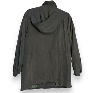 London Fog Hooded Coat Jacket Women's Large Petite Gray Blue Retro Grunge Casual