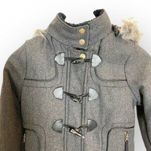 London Fog Jacket Faux Fur Hood Gray Coat Alpine Swiss Parka Size Girls Large 14