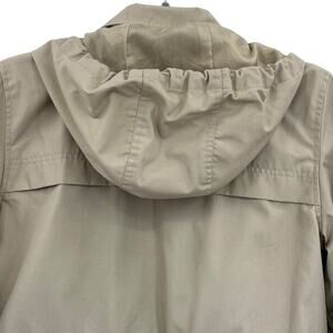 London Fog Khaki Full Zip Drawstring Waist Removable Hood Parka Jacket Size PS