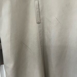 Elegant light tan trench coat with classic button accents. Ideal for versatile wear. Worn a few times needs dry cleaning.