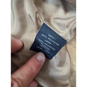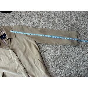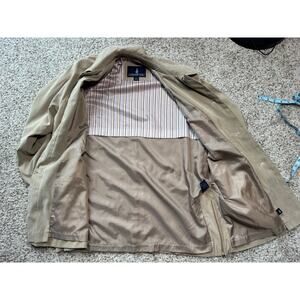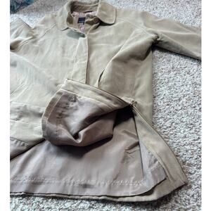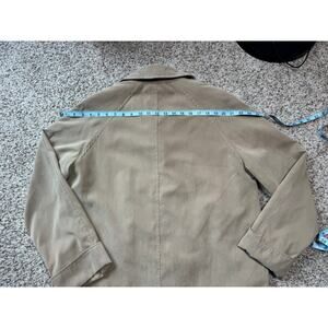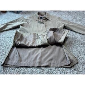 This London Fog Lightweight Raincoat/Blazer is perfect for travel and everyday wear! It comes in a Traditional Tan color and is a women's size Large Petite. The lightweight blazer/sweater/raincoat features a button-up closure. It has only been worn a few times and is in very good, pre-owned condition. There are side, zipper slits for comfortable adjustment & movement.