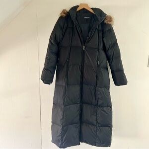 London Fog Long Line Duster Down Coat in Black sz Petite Large