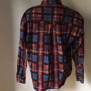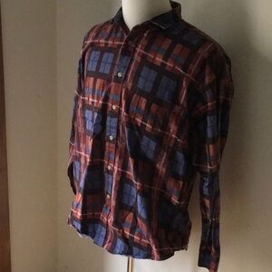 London Fog Long-Sleeve Button-Down Shirt in Multicolor Plaid Cotton (size XL)