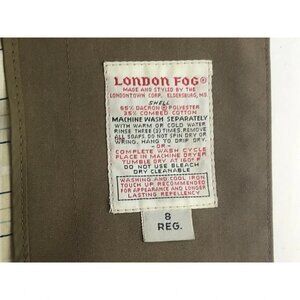 London Fog Maincoats Mens Khaki Lined Collared Button Front Trench Coat Size 8