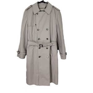 London Fog Maincoats Trench Coat Size 44L Double Breasted Belt Zip Liner Vintage