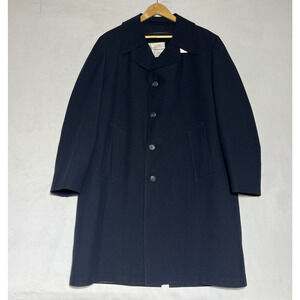 London Fog Lined Trench Coat Overcoat Mens 42R Blue Button Front Zip Out Fleece