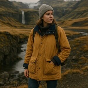Material: Shell: 100% Polyester, with a luxurious suede-like texture. Lining: 95% Acrylic, 5% Wool for added warmth. Sleeves: 100% Nylon for smooth layering. Fill: 100% Polyester.