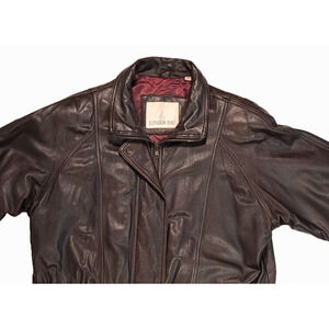 London Fog Men's Brown Soft Leather Overcoat Jacket Quilted Lining Size Large. Nice Pre-owned Condition.