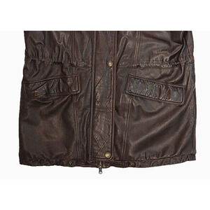 London Fog Men's Brown Soft Leather Overcoat Jacket Quilted Lining Size Large