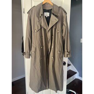 London Fog trench coat, men’s beige overcoat, classic belted raincoat, vintage-style trench, double breasted coat, men’s 46R outerwear, London Fog jacket