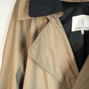 London Fog Mens Trench Coat Full Length Khaki with liner and belt SZ 44 Vintage