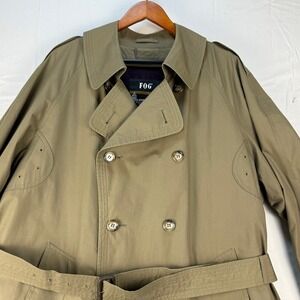 Keywords: London Fog trench coat, men's trench coat, beige trench coat, double breasted coat, belted trench coat, long trench coat, classic trench coat, vintage trench coat, size 42 long, men's outerwear, rain coat, weatherproof coat
