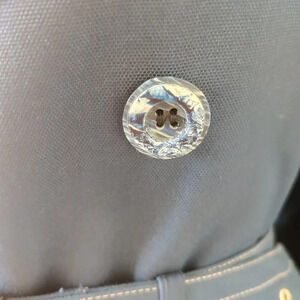 London Fog Navy Blue Trench Coat Utility Jacket Belted Size 14 Double Breasted Marble Buttons Pockets