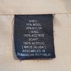 Wool blend: 80% wool/20% nylon, fully lined, 2 front pockets.