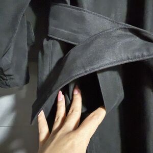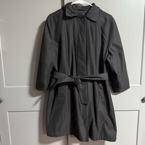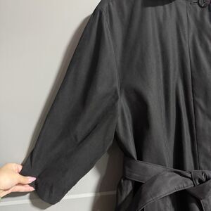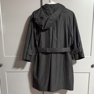 London Fog Petite Hooded Button Front Trench Coat Waist Tie Black 2P Detective